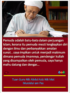 Pemuda adalah batu-bata dalam perjuangan Islam, kerana itu pemuda mesti lengkapkan diri dengan ilmu dan perbanyakkan amalan sunat…saya impikan untuk menjadi makmum dimana pemuda imamnya, pendengar kuliah yang disampaikan oleh pemuda, saya hanya mahu datang dan dengar…