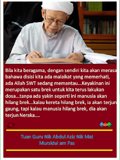 ” Bila kita beragama, dengan sendiri kita akan merasa bahawa disisi kita ada malaikat yang memerhati, ada Allah SWT sedang memantau…Keyakinan ini merupakan satu brek untuk kita terus lakukan dosa…tanpa ada yakin seperti ini manusia akan hilang brek…kalau kereta hilang brek, ia akan terjun gaung, tapi kalau manusia hilang brek, dia akan terjun Neraka”….