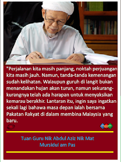 Untuk kebaikan bersama, kita tolak tepi dahulu fahaman politik. Sama-sama kita renungkan dan hayati kata-kata hikmah ulama’ berpengaruh Tuan Guru Nik Abdul Aziz Nik Mat ini. Semoga ianya memberi manfaat buat kita semua. InsyaAllah.